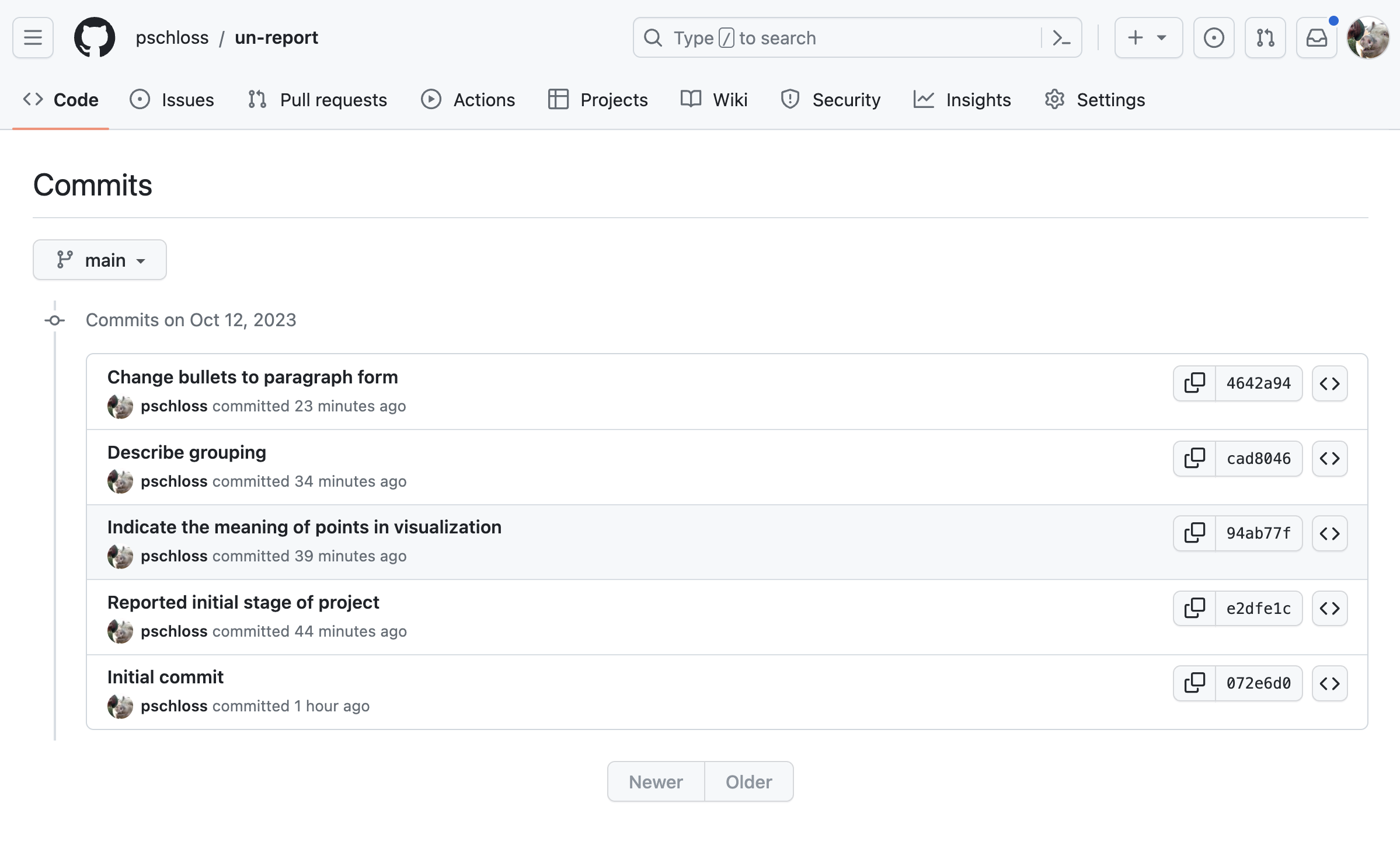 Continents are grouped by color.Which of the following commit messages would be most appropriate for the last commit?